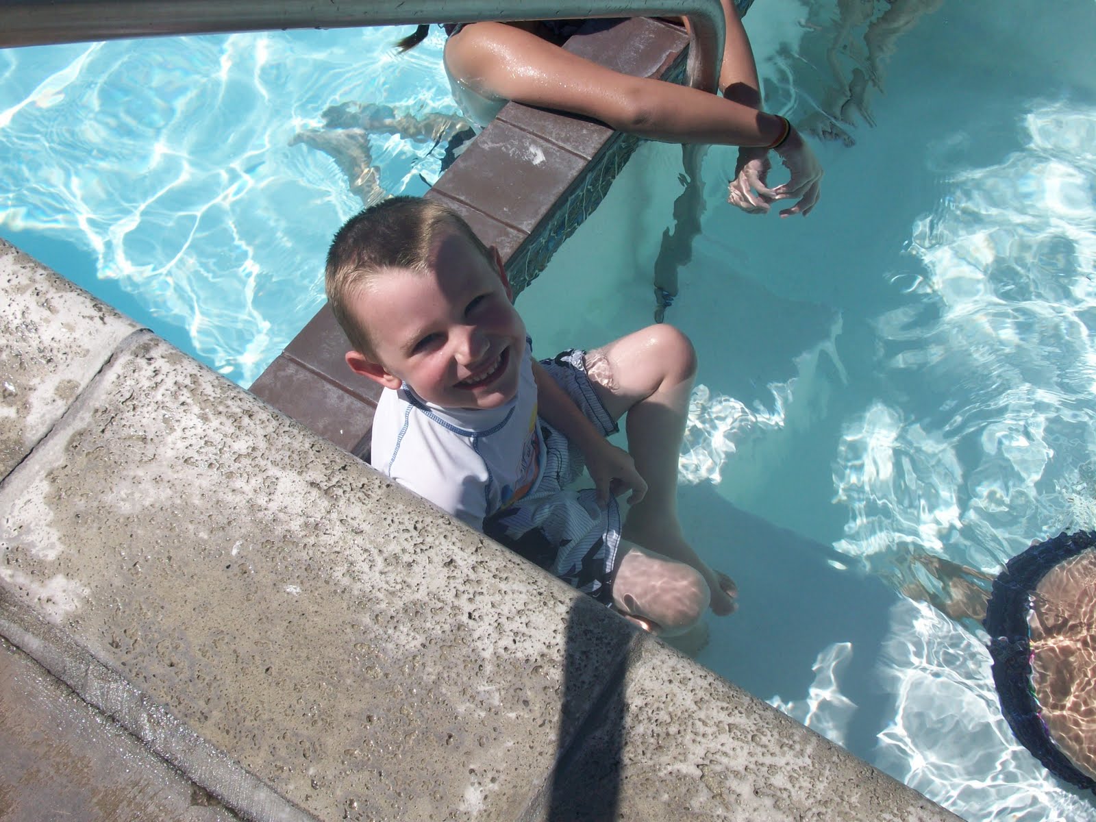 (not afraid of the snakes) and rescued the wayward pool. He safely secured it in the storage shed before coming in the house.